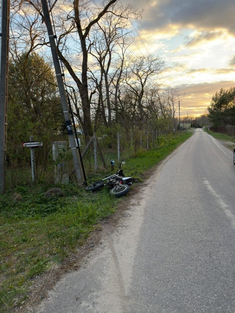 16-latka na motocyklu wypadła z drogi i się wywróciła. Nie miała uprawnień, a pojazd nie był zarejestrowany, ani ubezpieczony