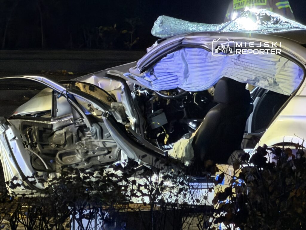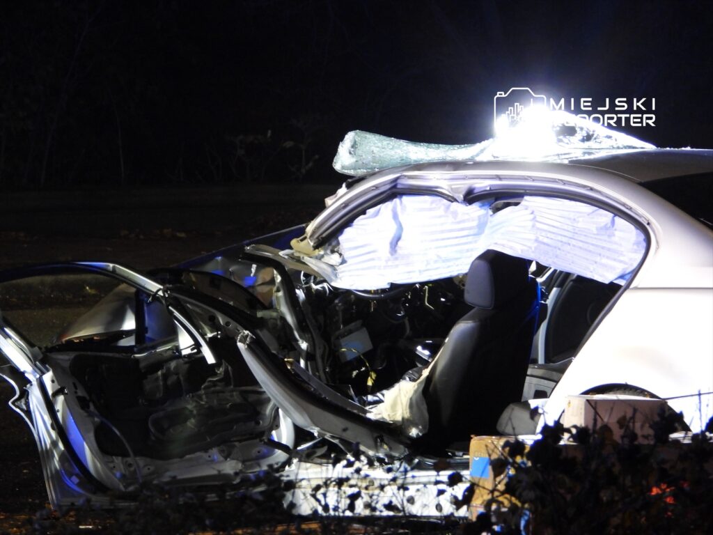 Po przybyciu na miejsce strażacy zastali rozbite BMW. Według wstępnych ustaleń kierujący – mężczyzna, obywatel Gruzji – z nieustalonych przyczyn utracił panowanie nad pojazdem, co doprowadziło do zderzenia z drzewem i elementem oświetlenia ulicznego. W aucie były dwie osoby: kierowca oraz pasażerka.
