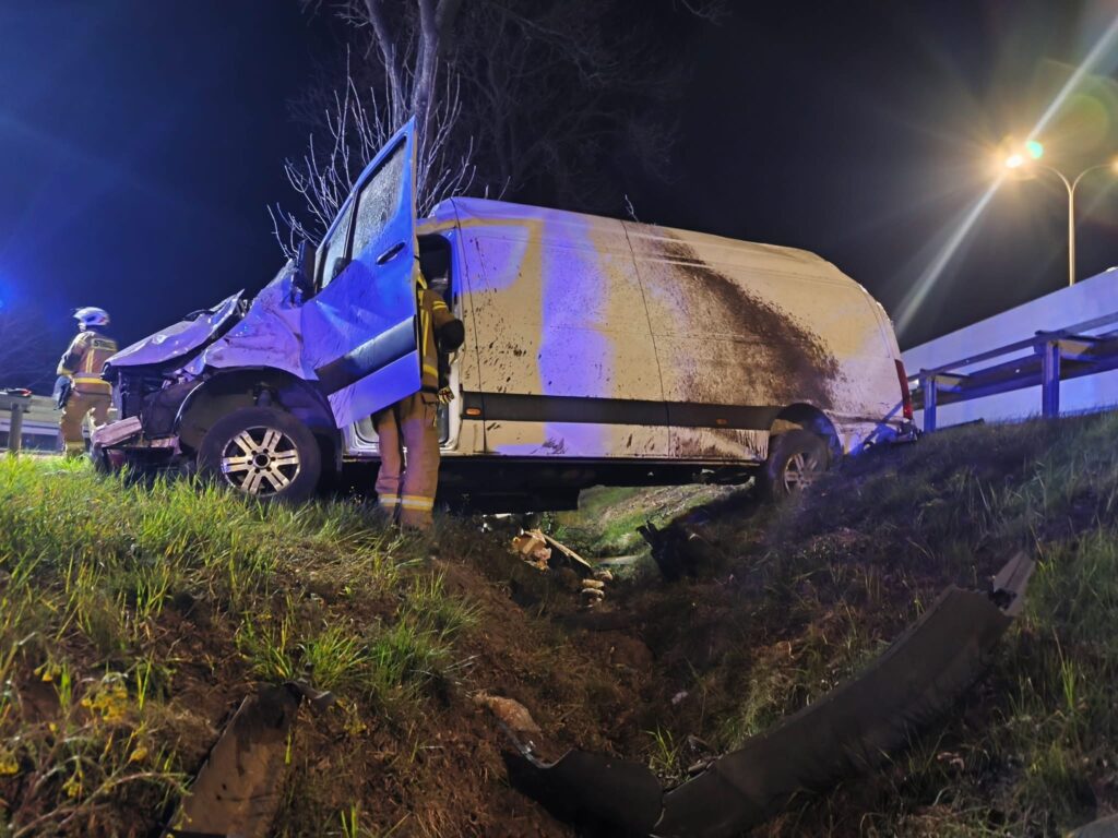 W nocy o godzinie 3:12 na trasie S8 na wysokości miejscowości Karpin w powiecie wołomińskim doszło do groźnie wyglądającego zdarzenia drogowego. Bus marki Mercedes uderzył w bariery energochłonne, a następnie dachował i zatrzymał się w rowie. Na szczęście nikt nie został ranny.