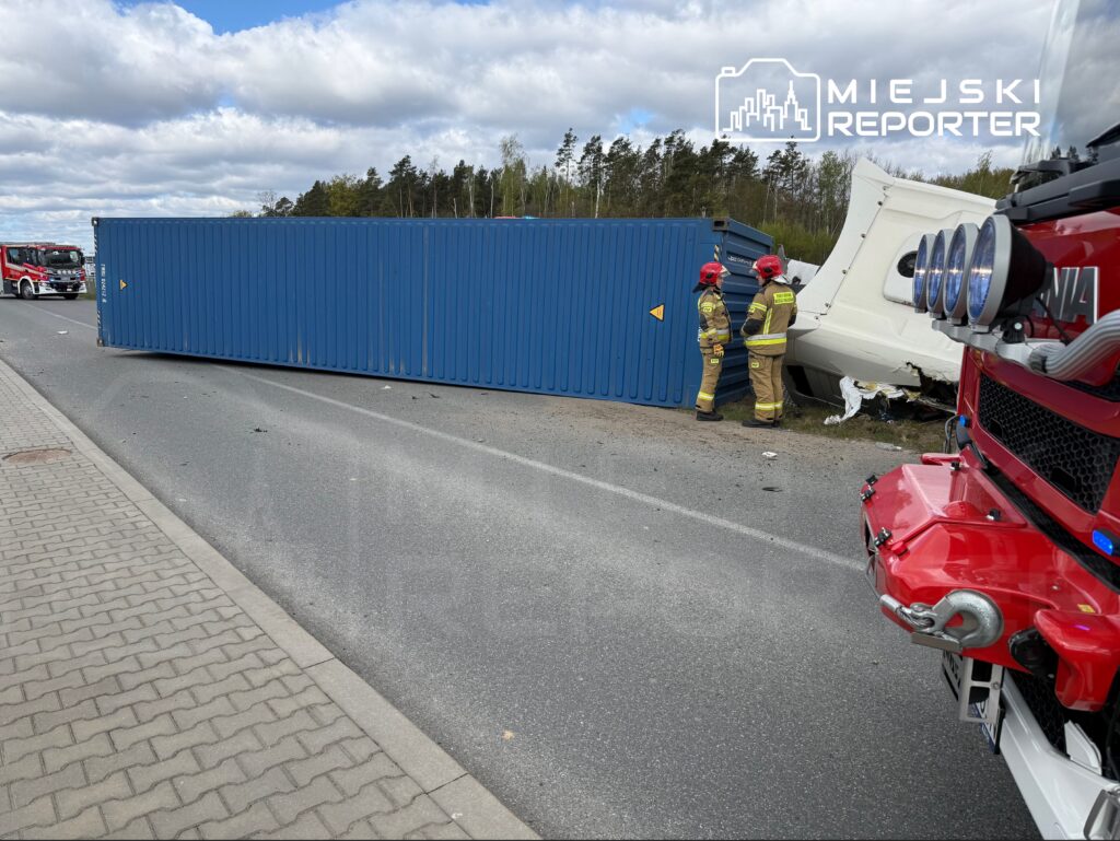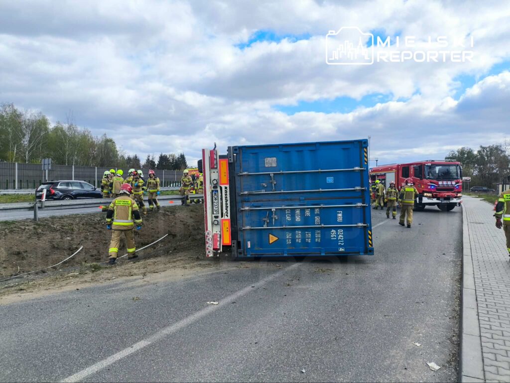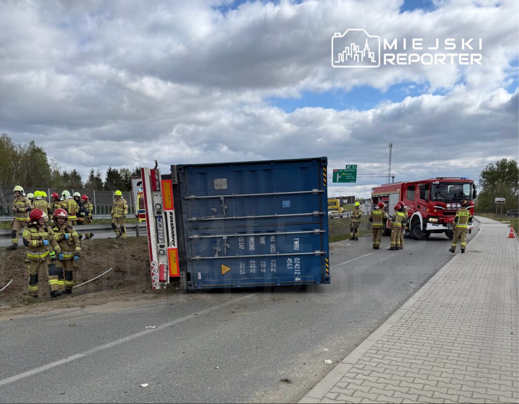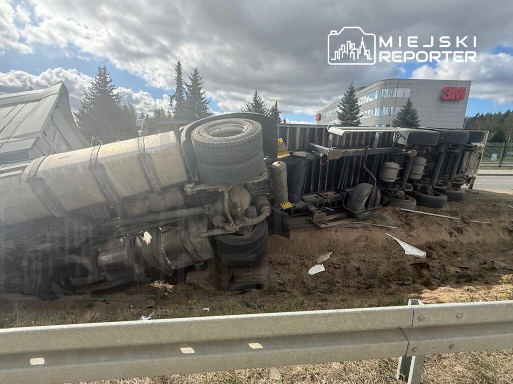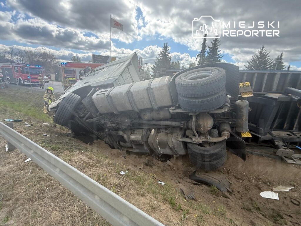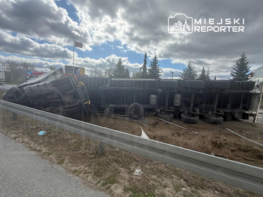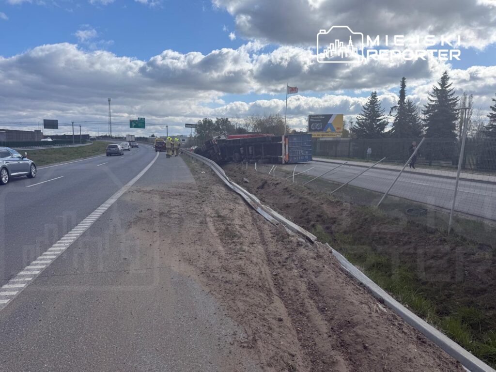 Groźne zdarzenie na trasie S8 w rejonie Nadarzyna (pow. pruszkowski). Około godziny 9:15 kierujący pojazdem ciężarowym z niewiadomych przyczyn zjechał z drogi, przebił bariery energochłonne, wypadł na jezdnię techniczną i przewrócił się na bok. Występują duże utrudnienia w kierunku Warszawy.