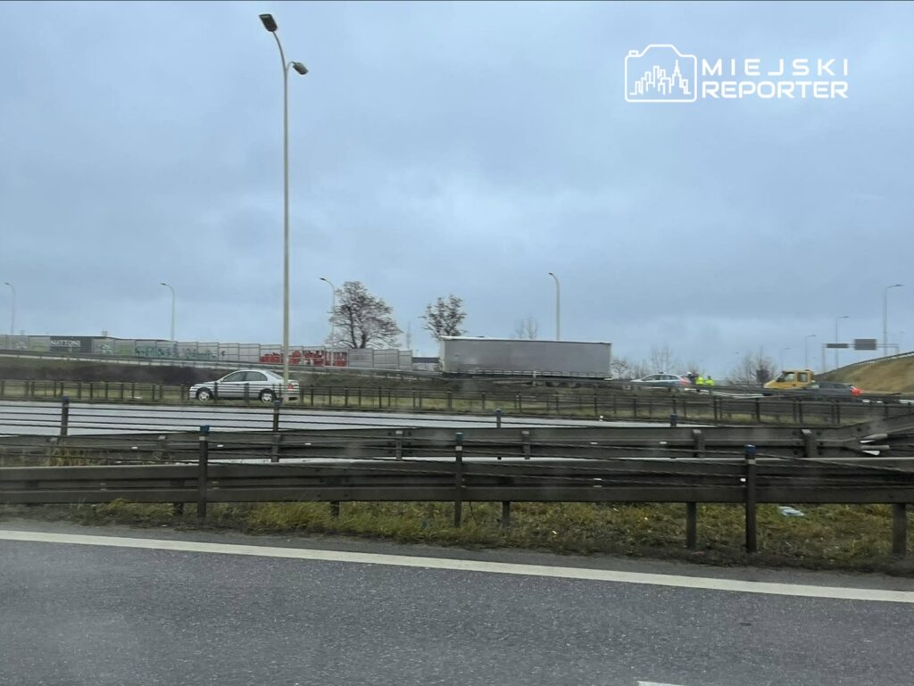 Policja informuje, że zgłoszenie o zdarzeniu wpłynęło przed godziną 6:00. Według wstępnych ustaleń kierowca zestawu składającego się z ciągnika siodłowego i naczepy, obywatel Litwy, wpadł w poślizg, uderzył w bariery i zablokował przejazd, stając zestawem w poprzek jezdni. Mężczyzna był trzeźwy i został ukarany mandatem karnym.