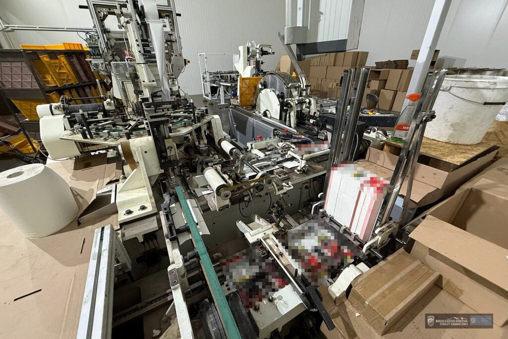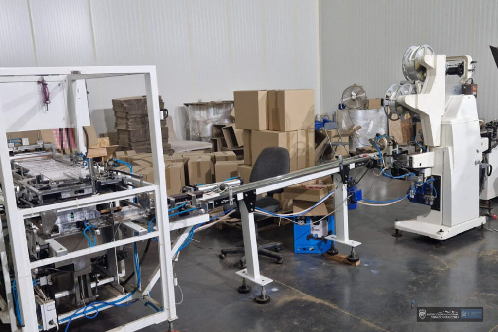 Funkcjonariusze Bieszczadzkiego Oddziału SG oraz CBŚP w woj. łódzkim i mazowieckim wykryli tytoń, gotowe papierosy, półprodukty, maszyny, linię produkcyjną oraz kilkanaście osób, w tym 9 Armeńczyków zaangażowanych w działalność zorganizowanej grupy przestępczej.