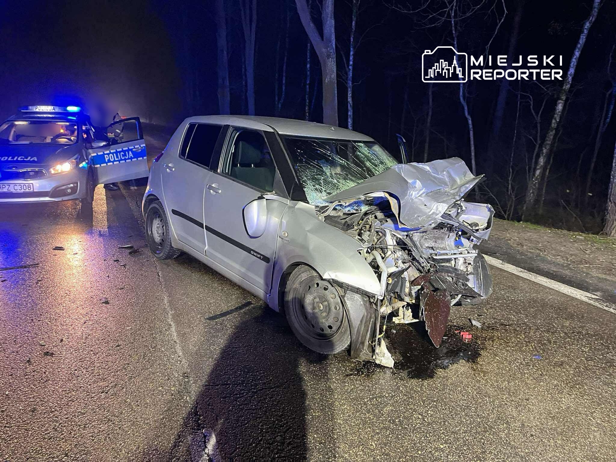 Do zdarzenia doszło w piątek, 26 grudnia, na DW 631 w miejscowości Słupno. Ze wstępnych ustaleń wynika, że 26-letni kierujący samochodem osobowym marki Skoda zjechał na przeciwległy pas ruchu i doprowadził do czołowego zderzenia z suzuki. Poważnie ranny został kierujący suzuki – trafił do szpitala.