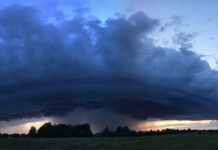 Najpierw nad miastem pojawiły się granatowe chmury związane z przemieszczającym się frontem atmosferycznym. Układ był rozległy, lecz dość wąski, dzięki czemu przeszedł przez stolicę szybko, ale wyraźnie i dynamicznie. Po jego przejściu, po zachodniej stronie Warszawy chmury ustąpiły i niebo szybko się przejaśniło.