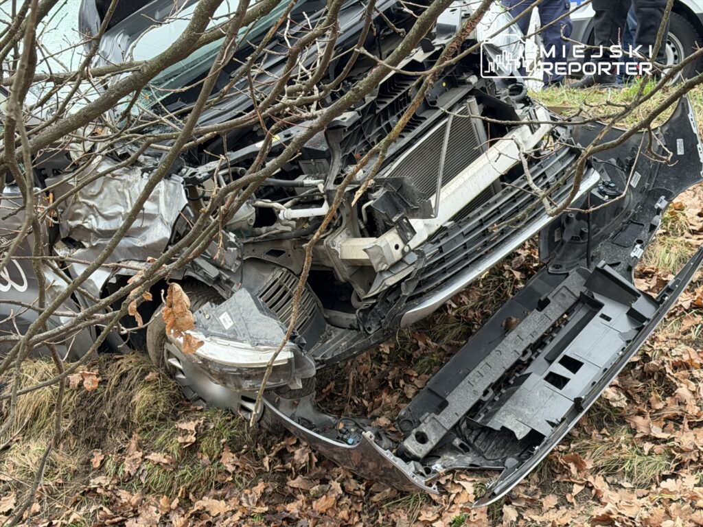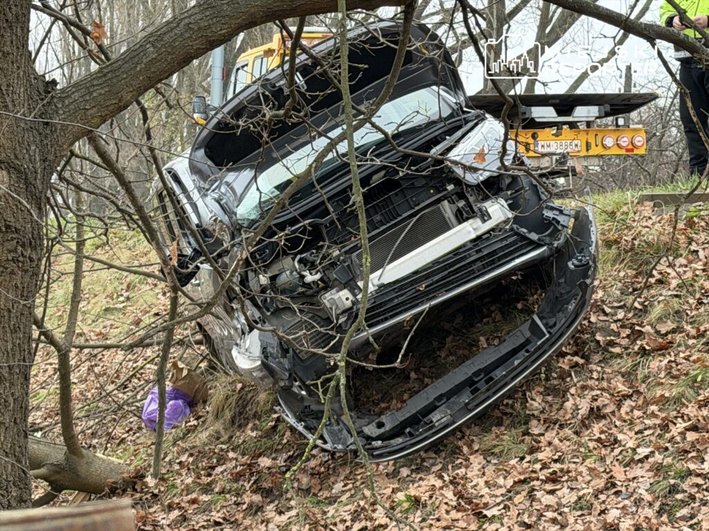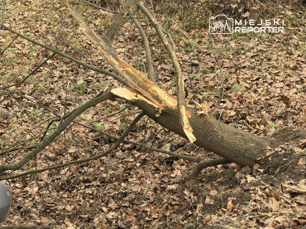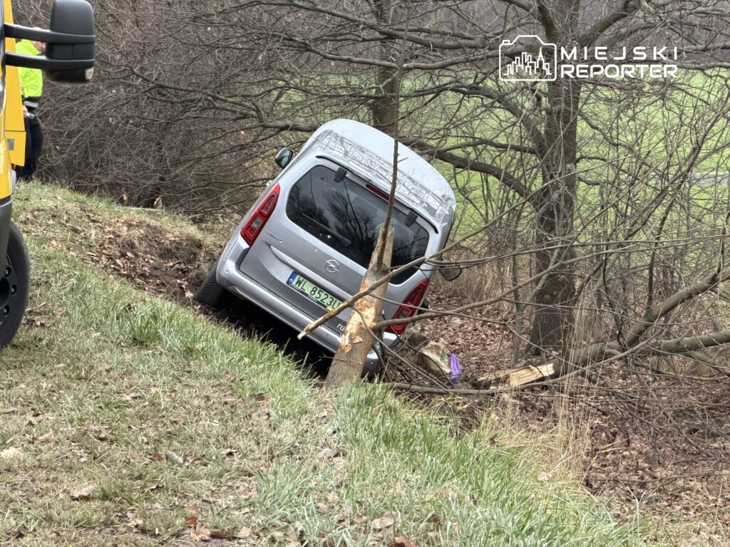 Groźne zdarzenie w Wilanowie. Auto w rowie i złamane drzewo