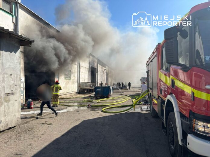 Pożar w hali produkcyjnej! Ranny pracownik. Trwa akcja gaśnicza