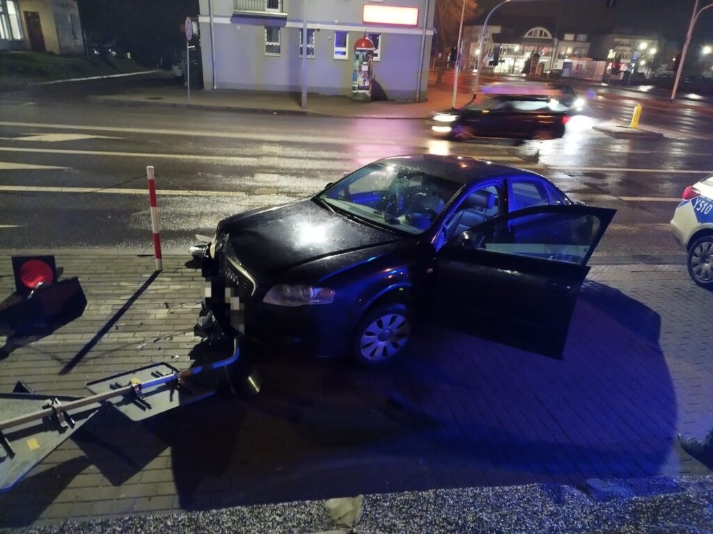 W czwartek (23.01) około godz. 20.05 policjanci z Wydziału Ruchu Drogowego dokonali pomiaru prędkości, z jaką poruszał się kierowca audi. Urządzenie pomiarowe zarejestrowało wynik 122 km/h. Po wykonaniu pomiaru funkcjonariusze natychmiast wsiedli do radiowozu i pojechali za pojazdem. Zlekceważenie ograniczenia prędkości to nie jedyne przewinienie kierowcy. Mężczyzna na dwóch skrzyżowaniach nie zastosował się do czerwonego światła nadawanego przez sygnalizator, czym stworzył zagrożenie w ruchu drogowym. Ostatecznie podczas wykonywania manewru skrętu w lewo w ul. 11 Pułku Ułanów Legionowych stracił panowanie nad pojazdem, wjechał na chodnik i uderzył w sygnalizator, a następnie w znak drogowy. Na szczęście nikt w tym zdarzeniu nie odniósł obrażeń. Policjanci sprawdzili stan trzeźwości 35-letniego mieszkańca powiatu ciechanowskiego – mężczyzna był trzeźwy.