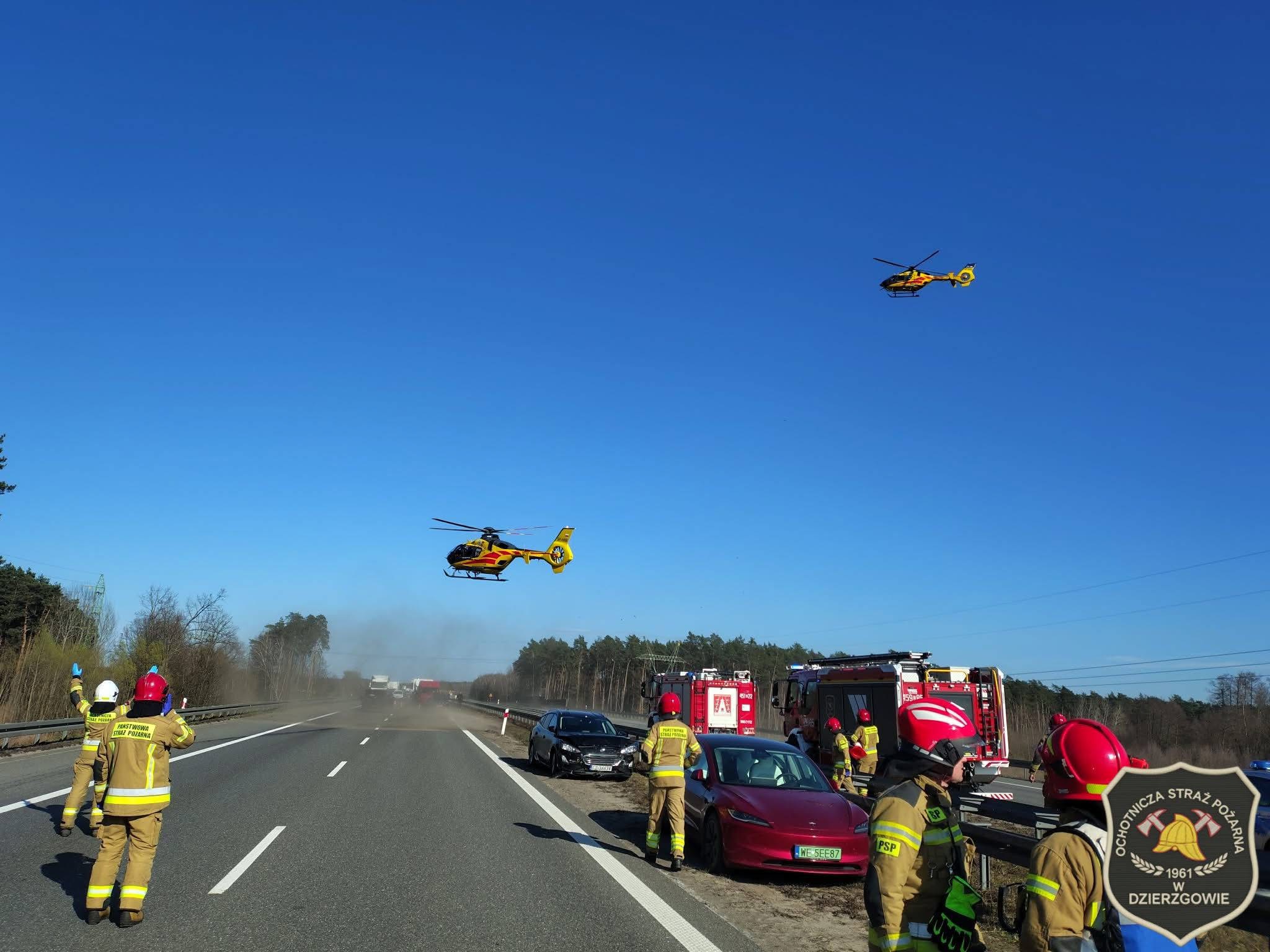 Karambol 6 pojazdów na autostradzie A2. Lądowały dwa śmigłowce LPR. Droga była zablokowana
