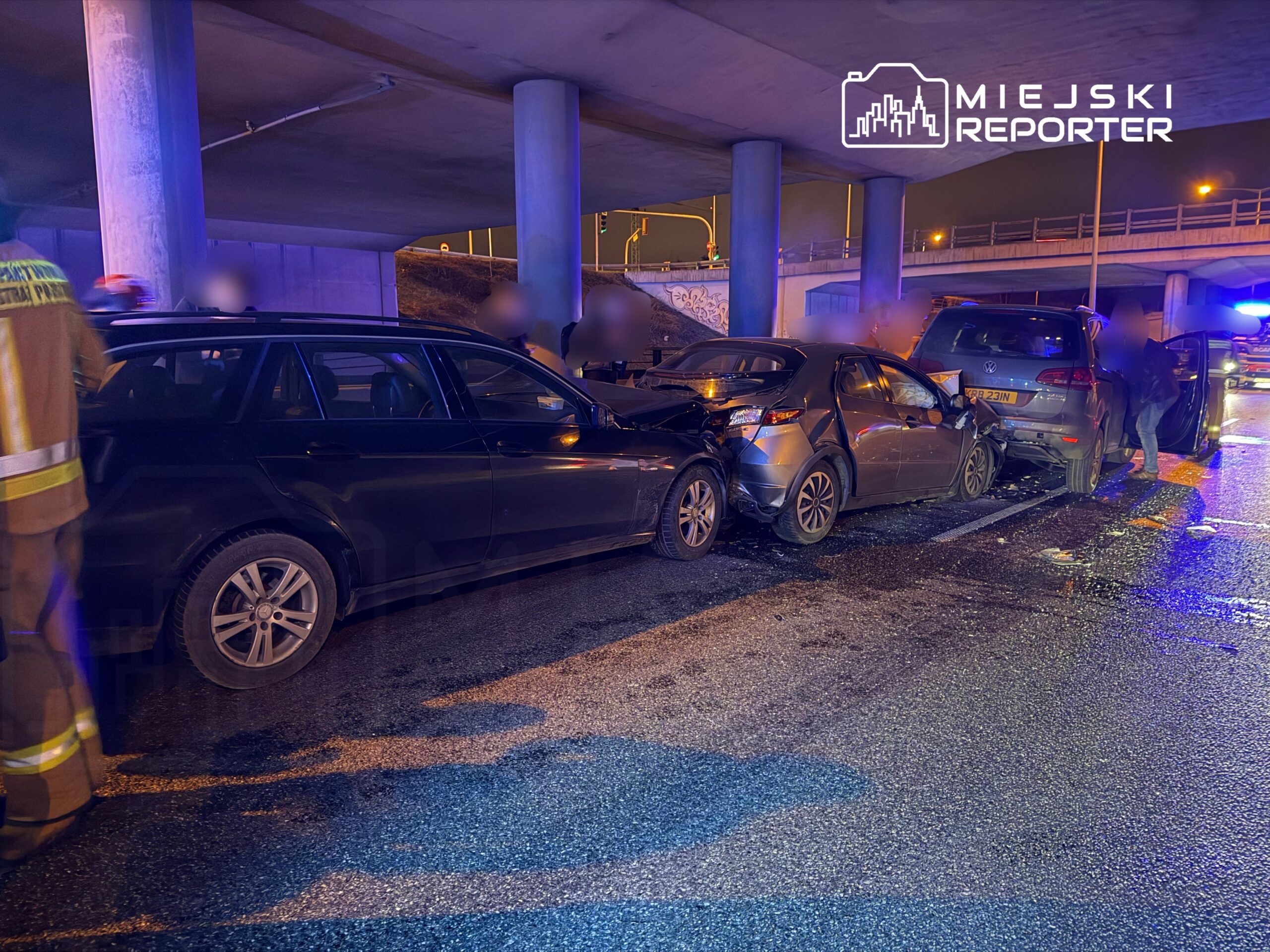 Ze wstępnych ustaleń wynika, że kierowcy wpadali na siebie jeden po drugim, a łącznie doszło do trzech kolizji. Dwie osoby zostały zbadane przez ratowników medycznych na miejscu, jednak nie wymagały hospitalizacji.