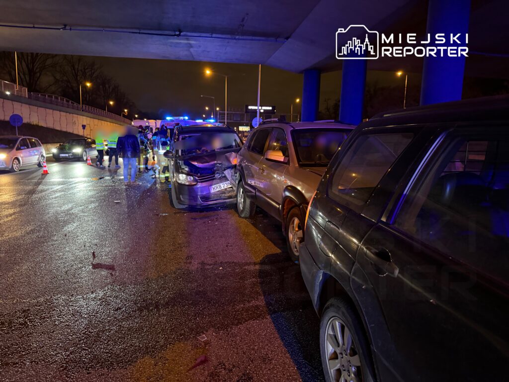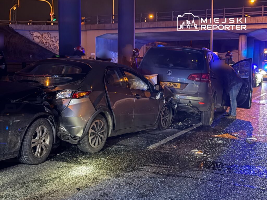 Na trasie S8 w Warszawie, na wysokości ulicy Powązkowskiej na Żoliborzu, doszło do karambolu z udziałem sześciu samochodów osobowych. W wyniku zdarzenia zablokowane zostały trzy pasy ruchu w kierunku Marek, co spowodowało poważne utrudnienia.