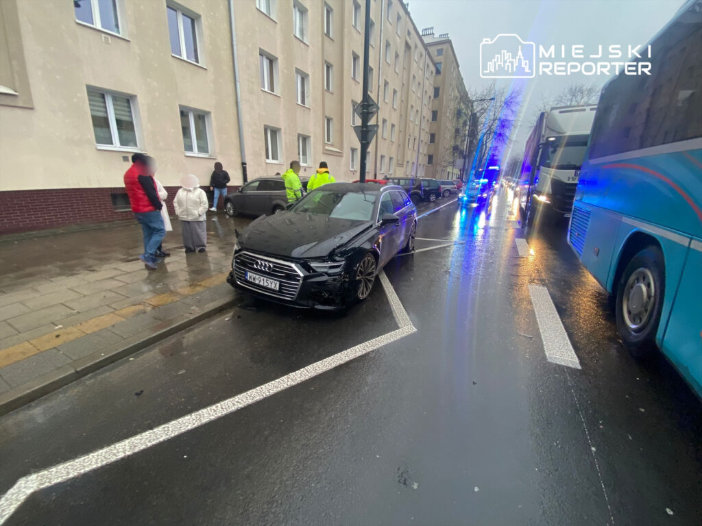 W środę 26 listopada na ulicy Leszno w Warszawie doszło do rozległej kolizji z udziałem siedmiu samochodów osobowych. Jedna osoba – pasażerka Citroena – z niegroźnymi obrażeniami trafiła do szpitala.
