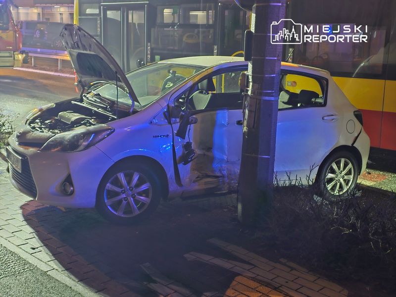 Siła uderzenia sprawiła, że osobówka obróciła się, a następnie bokiem uderzyła w latarnię.