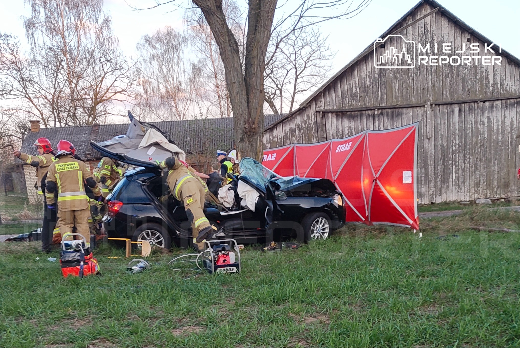 Strażacy przy użyciu narzędzi hydraulicznych wykonali dostęp do poszkodowanego i wydobyli go z wraku. 24-latek był nieprzytomny i nie wykazywał funkcji życiowych, dlatego na miejscu natychmiast rozpoczęto resuscytację krążeniowo-oddechową.