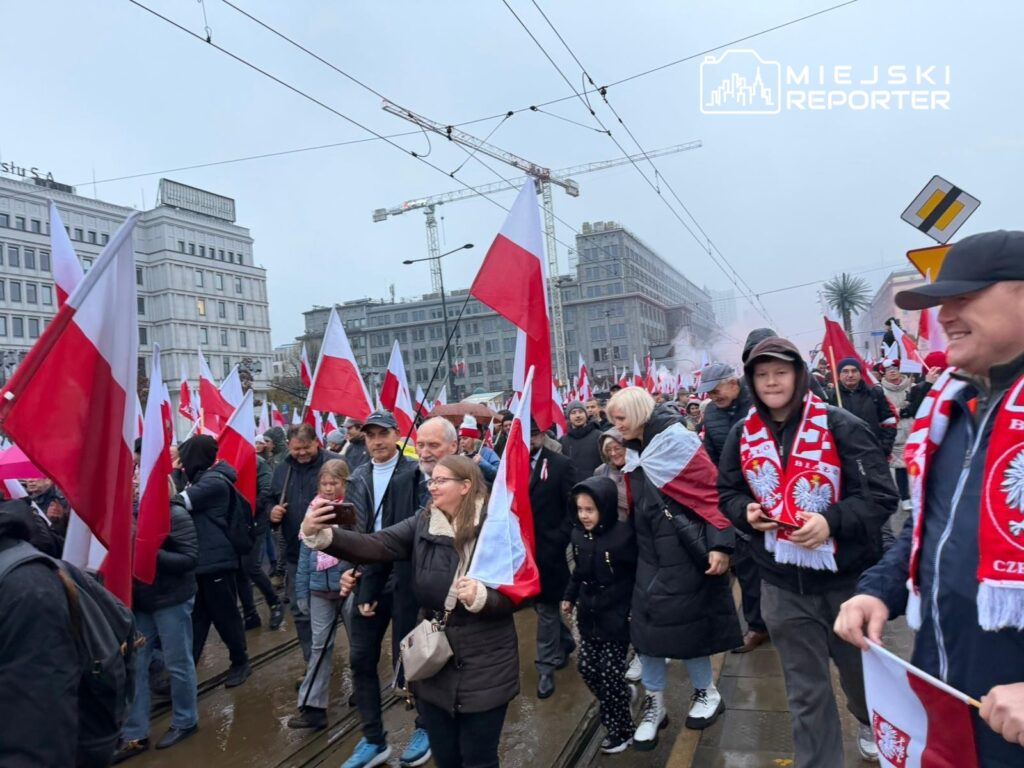 Marsz Niepodległości 2025 przeszedł dziś ulicami Warszawy spokojnie i bez poważniejszych incydentów. Mimo obowiązującego zakazu, w tłumie pojawiały się materiały pirotechniczne, a kolumna dotarła na błonia PGE Narodowego około godziny 16.30.