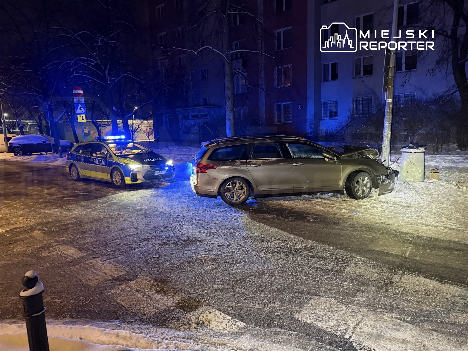 W nocy z 12 na 13 stycznia, o godzinie 1:03, służby otrzymały zgłoszenie o samochodzie marki Citroën, który na skrzyżowaniu ulic Zajączka i Boguckiego miał uderzyć w miejską latarnię oświetleniową.