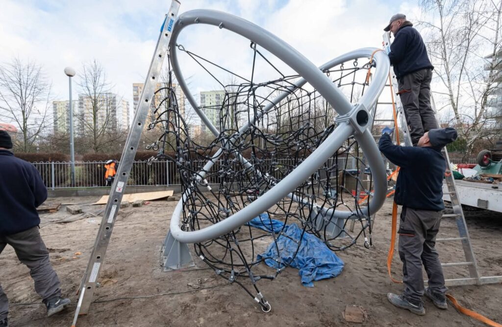 W Parku Chomicza na Bielanach trwa modernizacja placu zabaw. Na miejscu stoją już pierwsze urządzenia, a nowa przestrzeń ma wyróżniać się „kosmicznym” wyglądem. Otwarcie planowane jest za kilka dni.