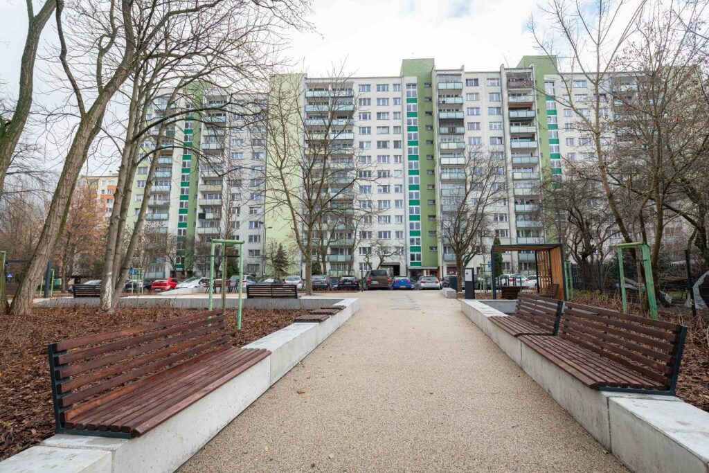 Zaniedbana działka u zbiegu ulic Bogusławskiego i Maszewskiej na Chomiczówce zamieniła się w kameralny skwer z zielenią, miejscami do odpoczynku i niewielką strefą rekreacji dla mieszkańców. Nowa przestrzeń jest już gotowa i udostępniona użytkownikom.