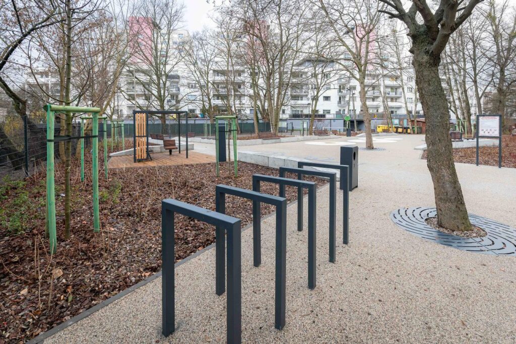 Nowy skwer powstał na terenie, który jeszcze niedawno pełnił funkcję nieuporządkowanej działki z rozpadającymi się garażami i zalegającymi odpadami. Jak informuje Urząd Dzielnicy Bielany, teren został całkowicie uprzątnięty i zrekultywowany – zlikwidowano stare zabudowania, usunięto zanieczyszczenia i przygotowano miejsce pod nasadzenia oraz małą architekturę.