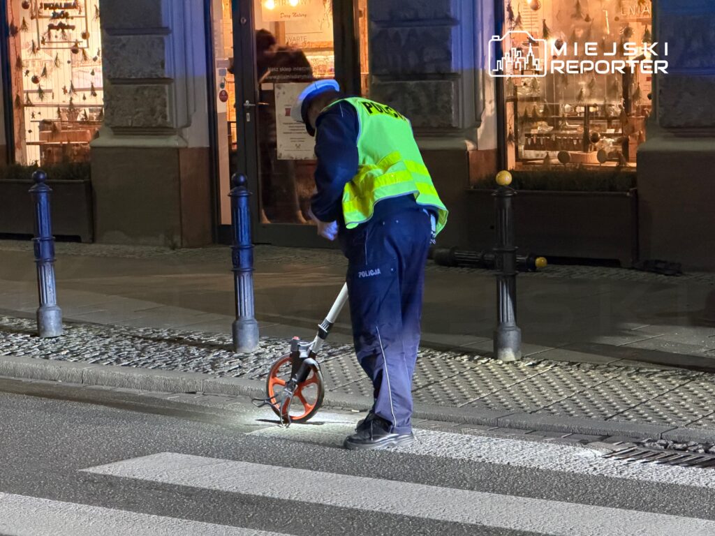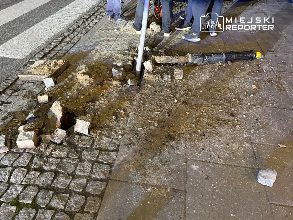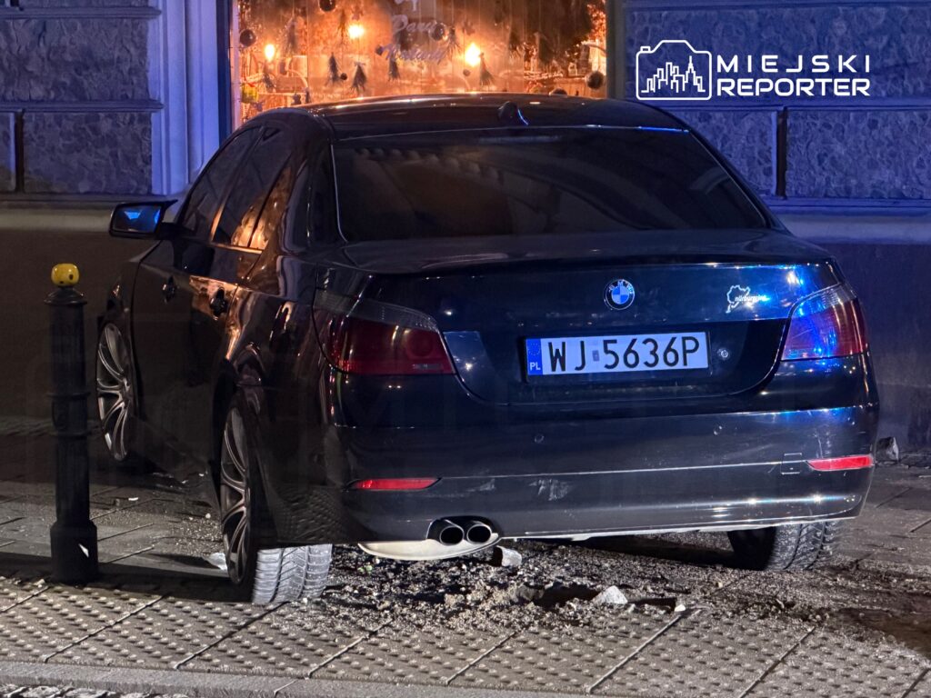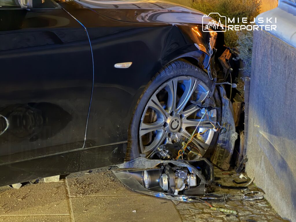 Ze wstępnych ustaleń wynika, że kierujący BMW – obcokrajowiec – najpierw wjechał w infrastrukturę drogową, uszkadzając znak oraz żeliwne słupki przy przejściu dla pieszych. Następnie samochód uderzył jeszcze w donicę i budynek.
