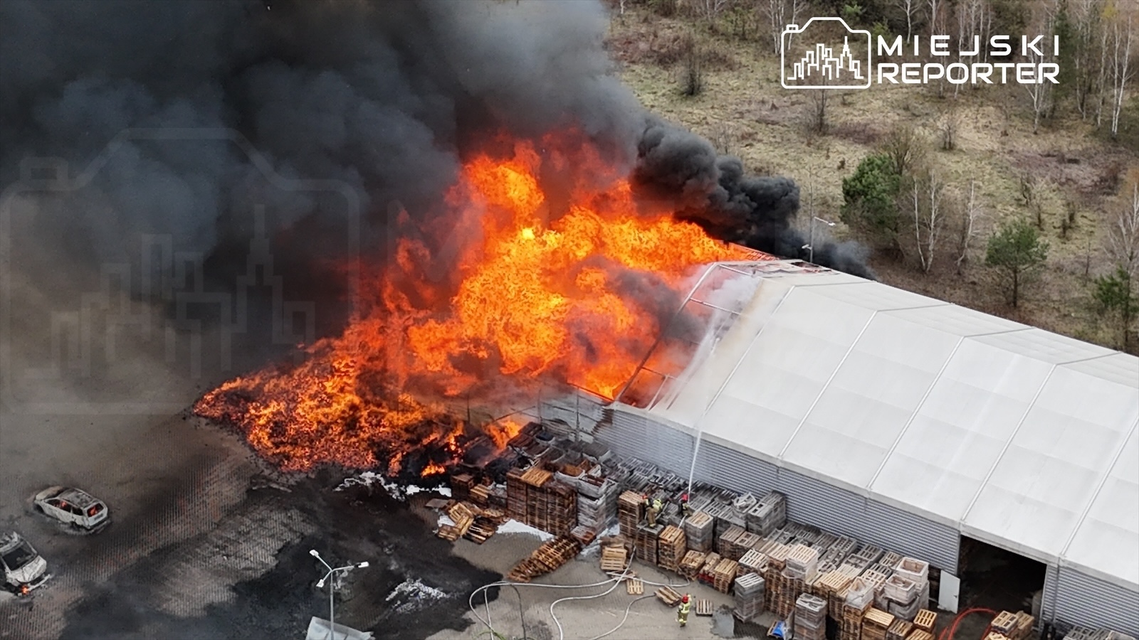 Z przekazanych informacji wynika, że pożar rozpoczął się od zbiornika z paliwem. W krótkim czasie ogień objął kolejne elementy znajdujące się w sąsiedztwie – palety, pojazdy oraz fragment hali hurtowni spożywczej. Na miejscu trwa rozbudowana akcja gaśnicza.