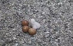 W tym sezonie w gnieździe pojawiły się cztery jajka. Ponieważ były składane w odstępach około 2–3 dni, wykluwanie piskląt także może następować stopniowo. Pierwszy maluch pojawił się dziś nad ranem. Jeśli rozwój pozostałych jaj przebiega prawidłowo, kolejne pisklęta mogą wykluć się w najbliższych dniach.