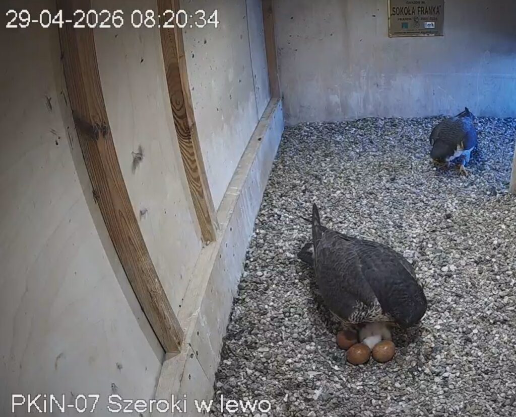 Dziś, 29 kwietnia, nad ranem w gnieździe sokołów wędrownych na Pałacu Kultury i Nauki w Warszawie wykluło się pierwsze pisklę obecnej pary. Maluch przyszedł na świat około godziny 3:00. To pierwszy potomek samca Hrabiego oraz nowej, nienazwanej jeszcze samicy, która zajęła miejsce po zmarłej Gidze. W gnieździe złożone zostały łącznie cztery jajka, dlatego w najbliższych dniach można spodziewać się kolejnych wykluć.