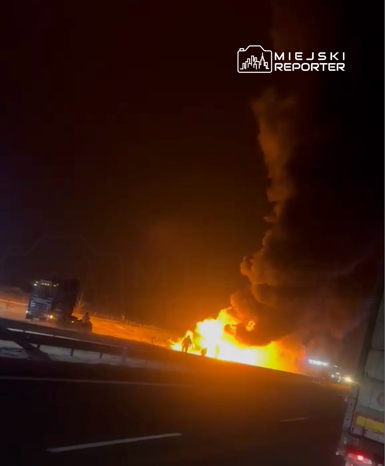 Z informacji z miejsca zdarzenia wynika, że kierowca zdołał odpiąć ciągnik siodłowy i odjechać nim na bezpieczną odległość, zanim ogień objął całą naczepę. Na miejscu pracują liczne zastępy straży pożarnej, które prowadzą działania gaśnicze.