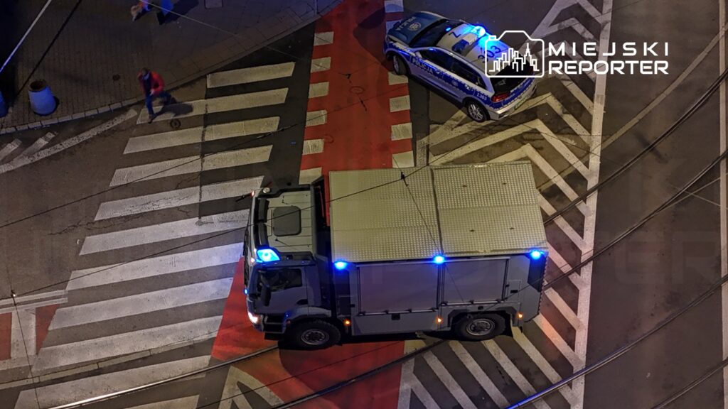 Na miejsce niezwłocznie zadysponowano liczne załogi policji oraz nadzoru ruchu. Funkcjonariusze zamknęli chodnik i ulicę, a także wstrzymali ruch tramwajowy i autobusowy w obu kierunkach. Rejon został odgrodzony taśmami, a przechodniów i pasażerów kierowano na trasy alternatywne. Przez cały czas na miejscu pracowali policyjni pirotechnicy, którzy krok po kroku sprawdzali pozostawiony pakunek.