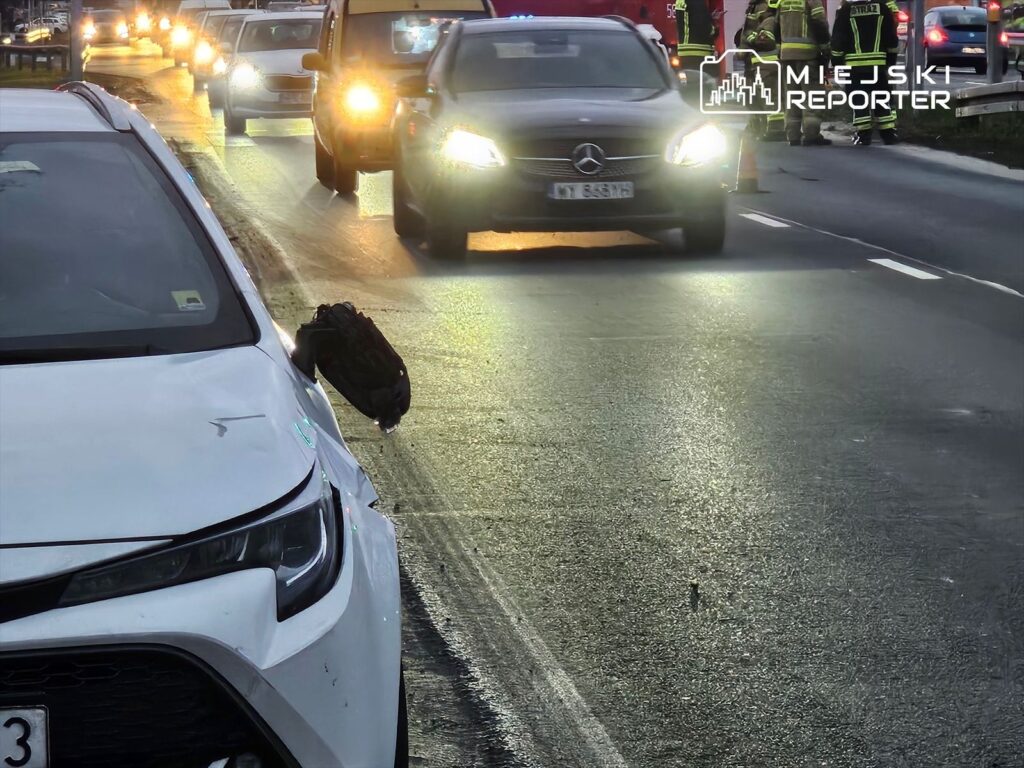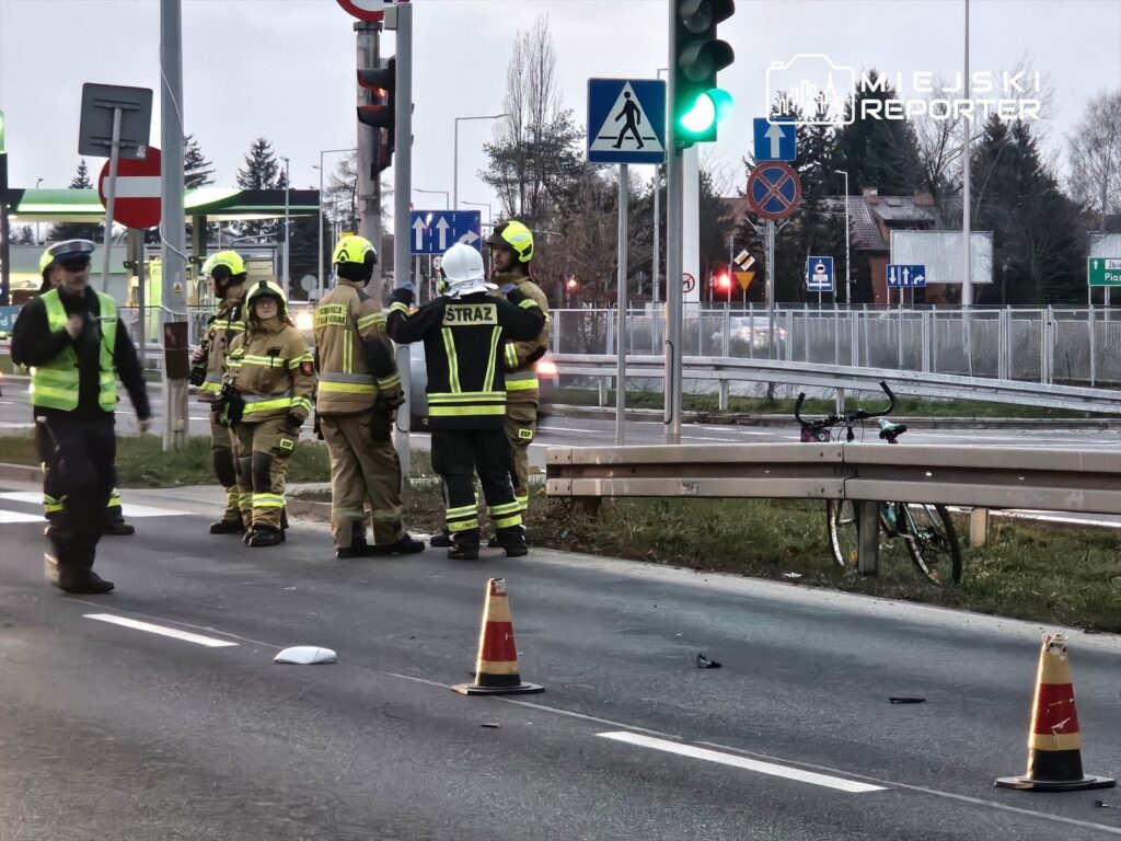 W czwartek 11 grudnia 2025 roku, około godziny 15:00, w Pruszkowie w Al. Jerozolimskich na skrzyżowaniu z ulicą Dolną doszło do potrącenia rowerzysty przez samochód osobowy na przejściu dla pieszych. Na miejsce skierowano patrol policji, załogę Zespołu Ratownictwa Medycznego oraz strażaków z OSP Piastów.
