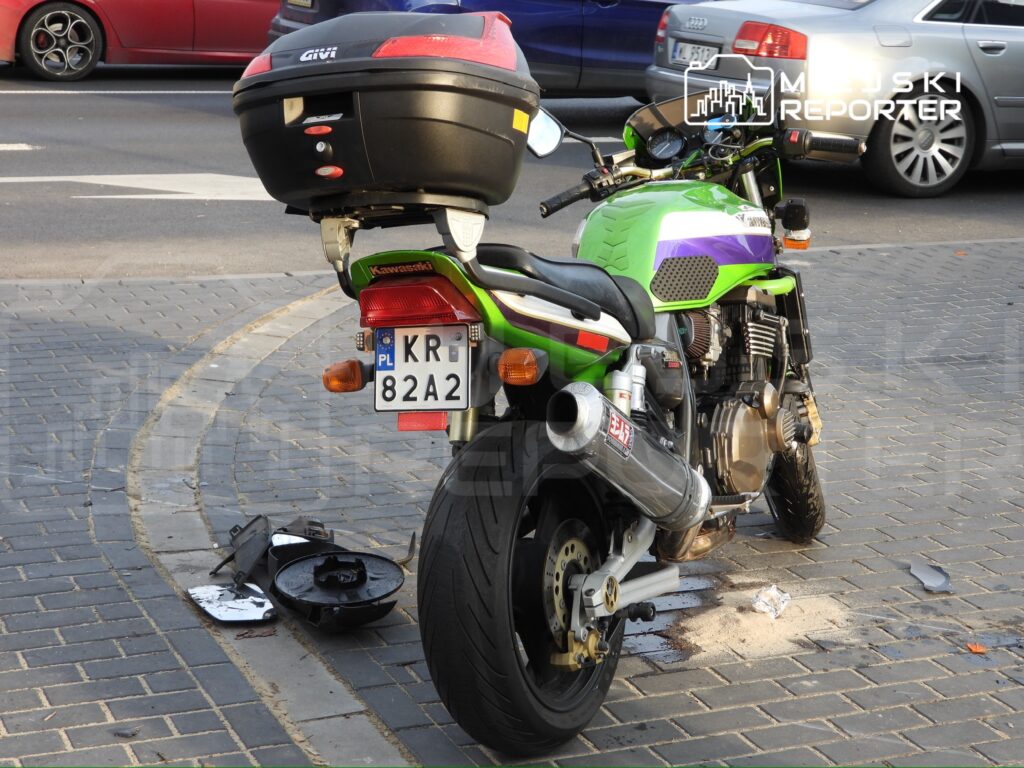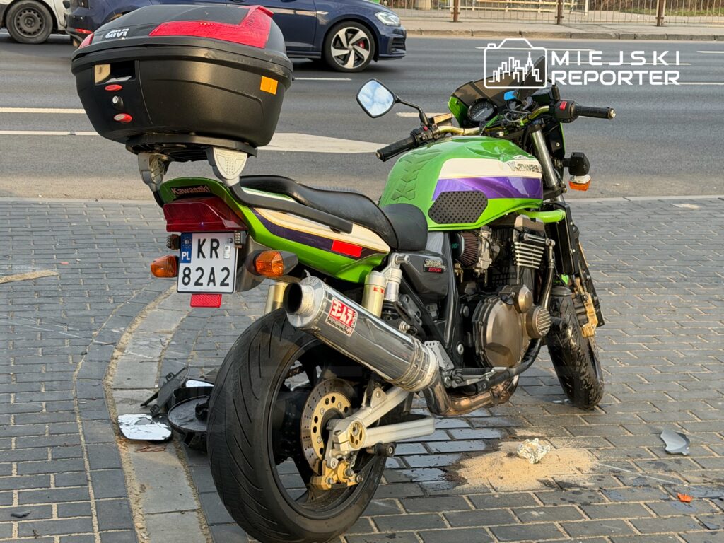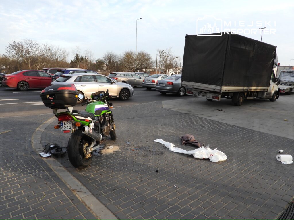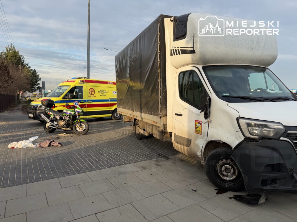 Do zdarzenia doszło na jednym z głównych ciągów komunikacyjnych północnej Warszawy. Zderzyły się pojazd dostawczy marki Renault oraz motocykl marki Kawasaki. Siła uderzenia spowodowała, że motocykl wpadł na chodnik.