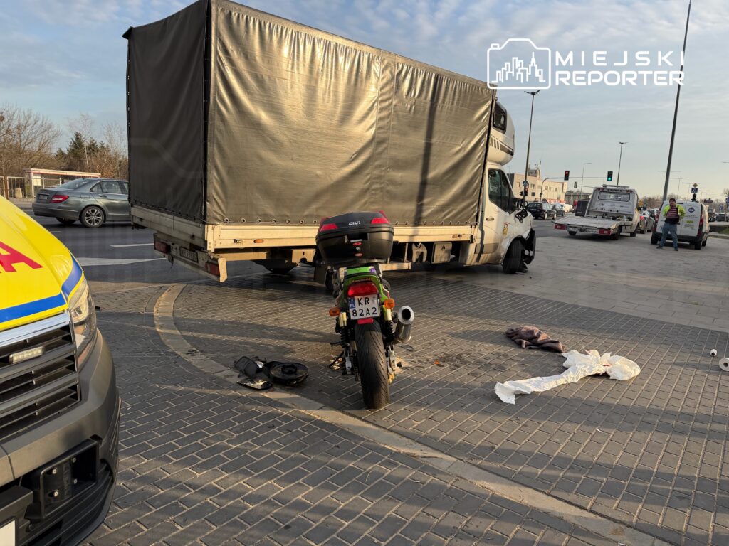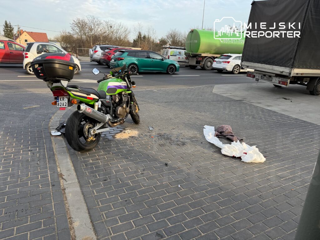 Ze wstępnych ustaleń wynika, że kierujący Renault nagle skręcił w prawo z środkowego pasa, przecinając buspas. W tym samym czasie buspasem poruszał się motocyklista. Doszło do zderzenia obu pojazdów, a kierujący jednośladem odniósł poważne obrażenia.
