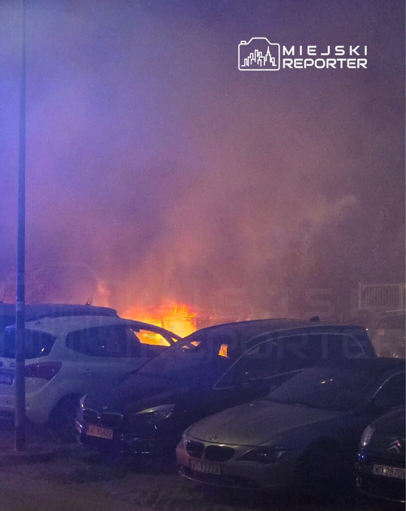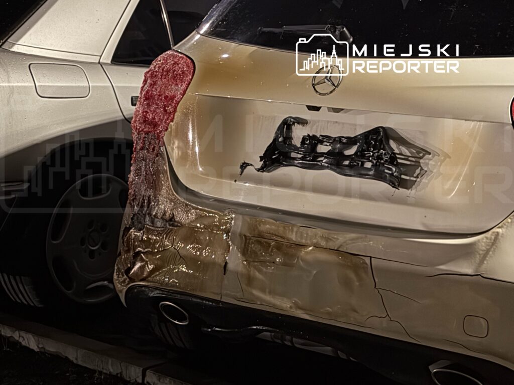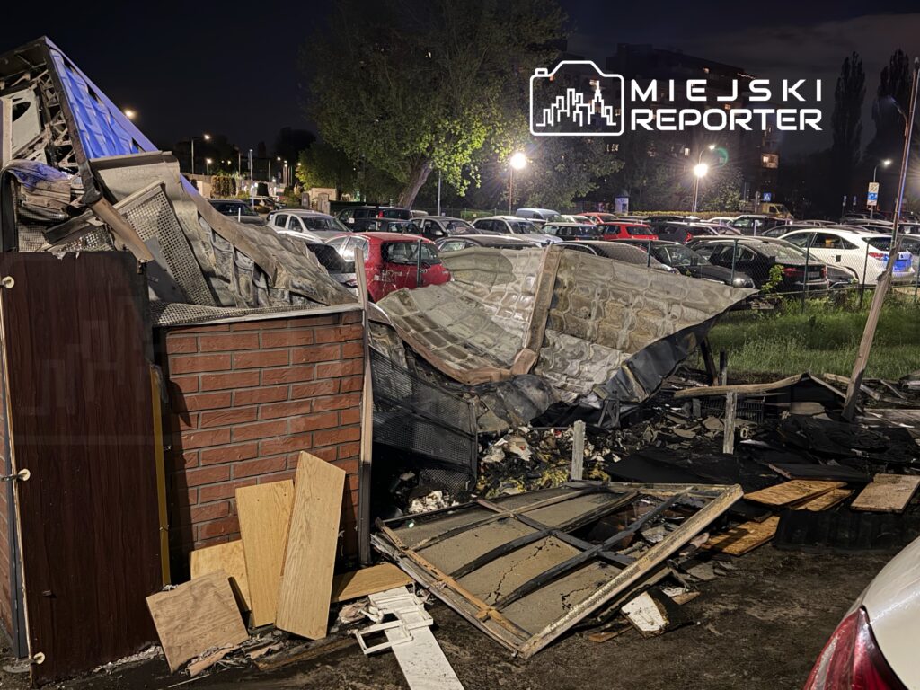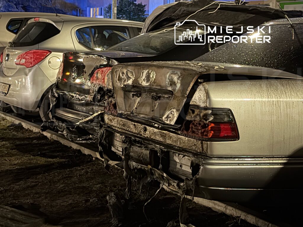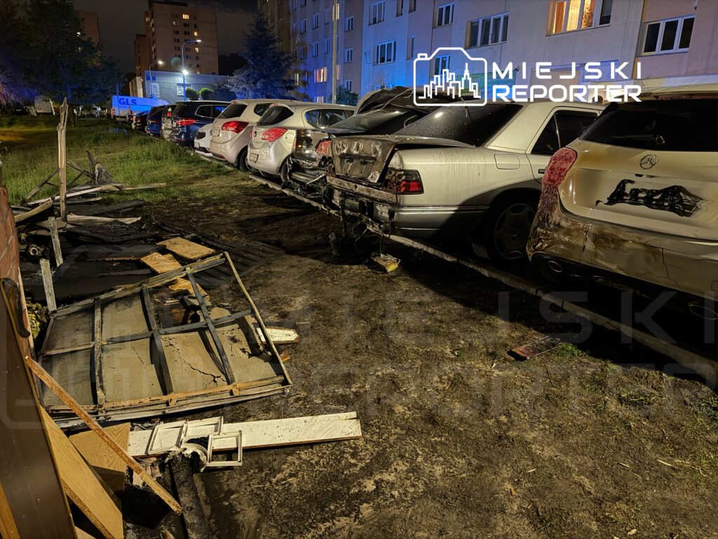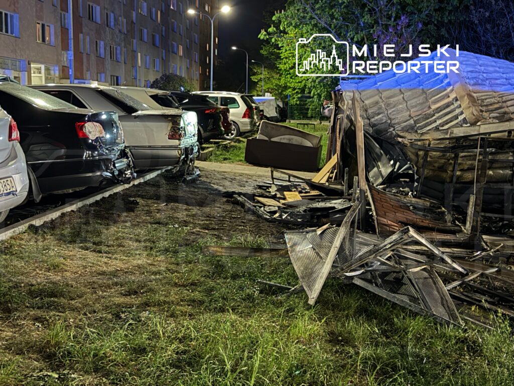 Pożar altany śmietnikowej na Bielanach. Uszkodzone dwa Mercedesy i Volkswagen. Policja apeluje do świadków