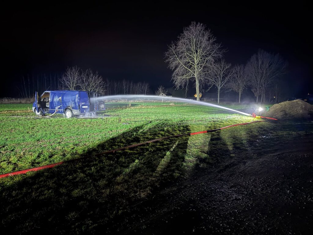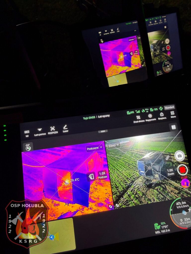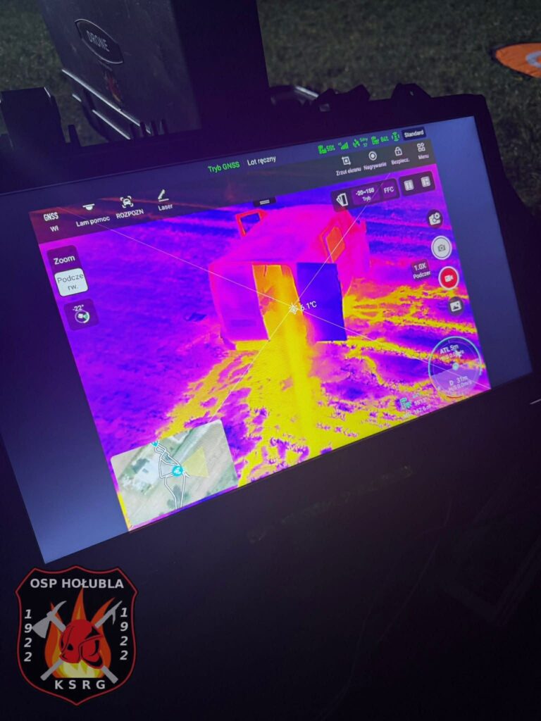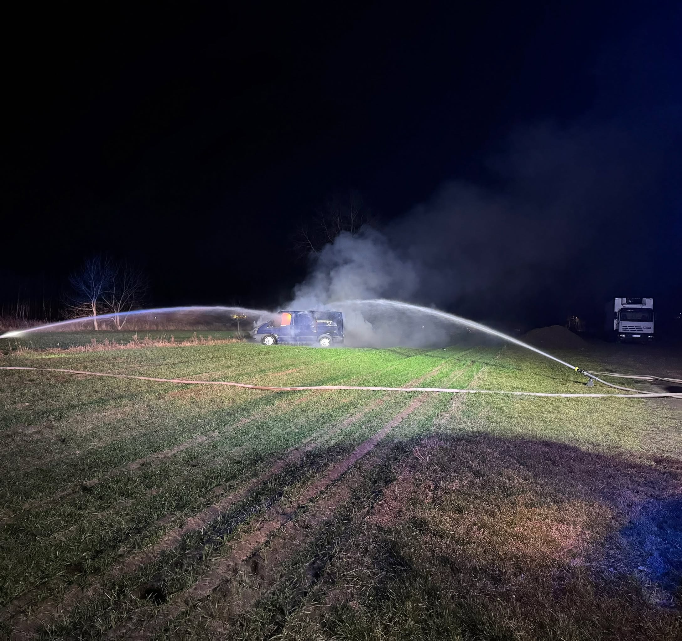 Zgłoszenie dotyczyło busa znajdującego się początkowo w rejonie zabudowań. Według przekazanych informacji właściciel, widząc zagrożenie, wyprowadził pojazd z garażu i odjechał nim jak najdalej od budynków. Udało mu się dotrzeć na pobliskie pole, gdzie pozostawił busa i oddalił się na bezpieczną odległość.