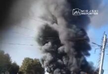 “Pożar hali magazynowej – Bramki, gmina Błonie. Tuż po godzinie 10:00 do Stanowiska Kierowania PSP wpłynęło zgłoszenie o pożarze hali magazynowej (15×20 m, 300 m²) na terenie zakładu zajmującego się autorecyklingiem. Po przybyciu pierwszych zastępów obiekt był całkowicie objęty ogniem.
