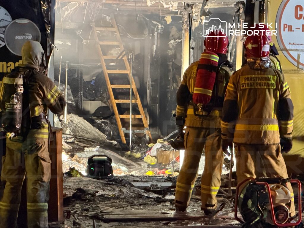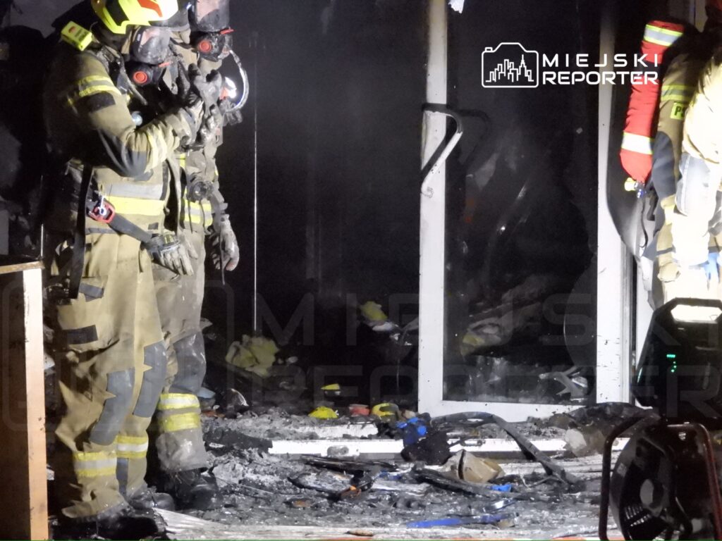 Strażacy zlokalizowali pożar około godziny 19:40. Obecnie działania są na etapie dogaszania i sprawdzania pogorzeliska, a teren wokół uszkodzonego lokalu pozostaje zabezpieczony.