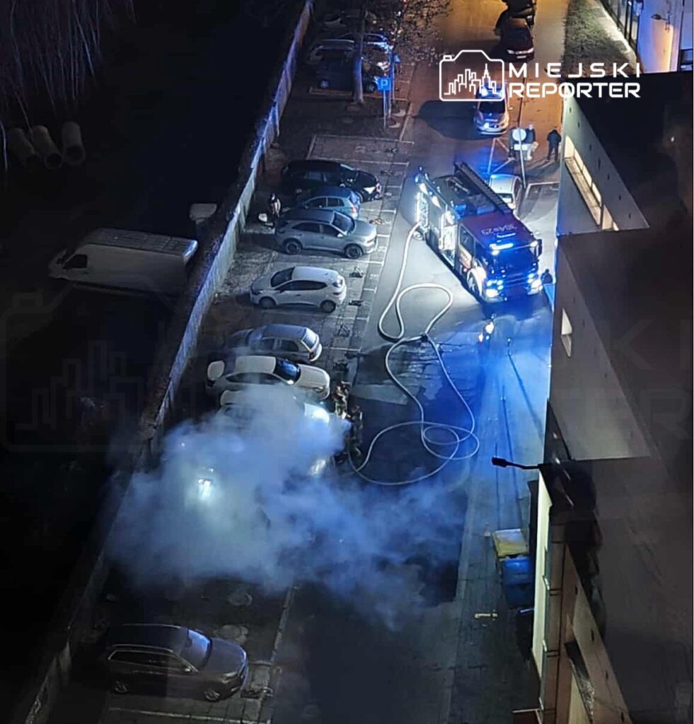 Z przekazanych informacji wynika, że pożar rozpoczął się od jednego z zaparkowanych samochodów. Płomienie szybko objęły pojazd, a wysoka temperatura doprowadziło do uszkodzenia karoserii dwóch aut zaparkowanych obok – toyoty i volkswagena. Doszło do nadpaleń elementów pojazdów.
