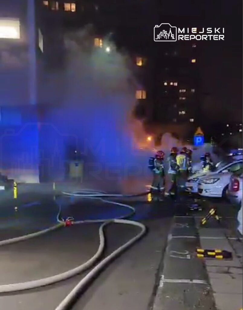 Na miejsce skierowano straż pożarną. Strażacy podali dwa prądy wody na płonący samochód oraz strefę objętą wysoką temperaturą. Dzięki sprawnej akcji gaśniczej ogień został szybko opanowany i nie rozprzestrzenił się na kolejne pojazdy ani inne elementy infrastruktury.