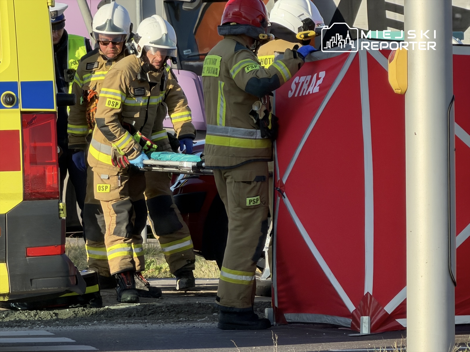 Ze względu na stan poszkodowanego na miejscu lądował także śmigłowiec Lotniczego Pogotowia Ratunkowego. Po odzyskaniu funkcji życiowych, pacjent trafił na pokład śmigłowca LPR i został przetransportowany drogą lotniczą do szpitala.