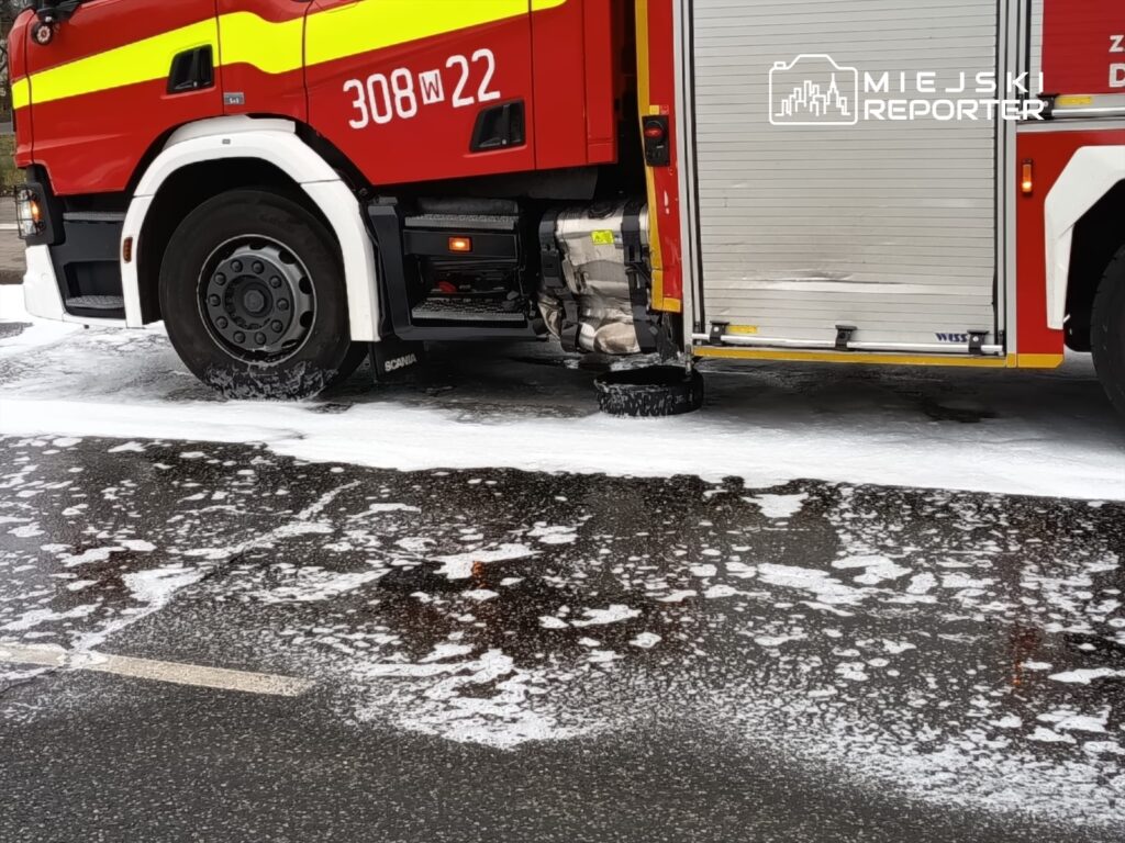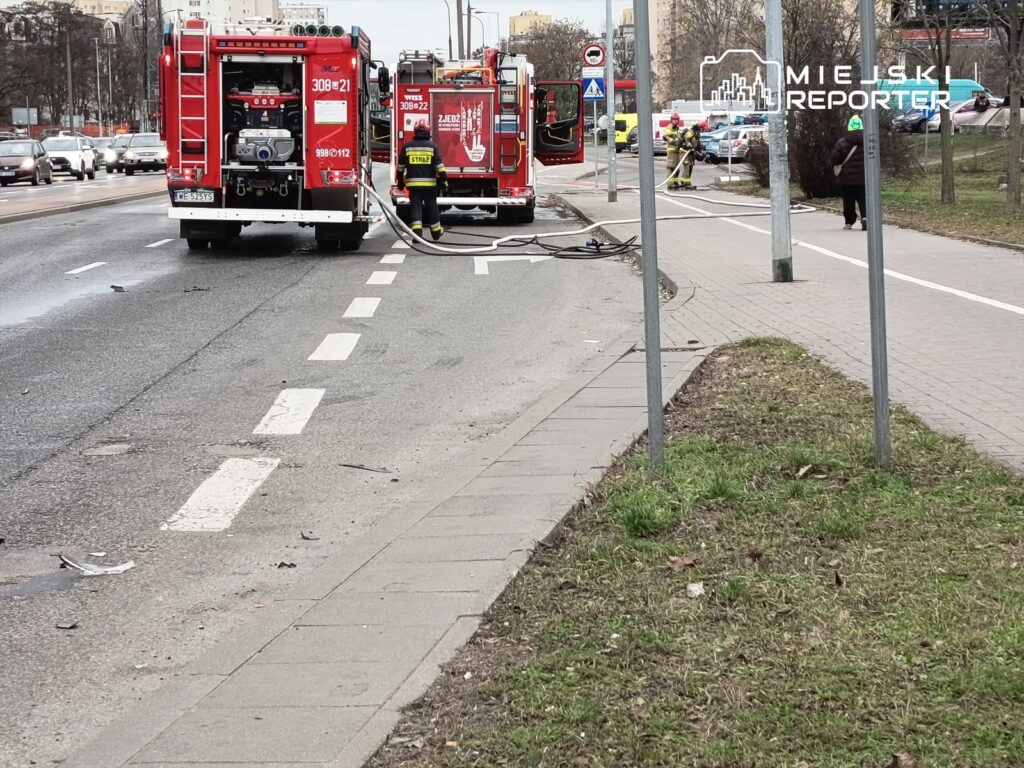 Utrudnienia na ul. Fieldorfa „Nila” wynikały także z wycieku paliwa z uszkodzonego zbiornika w wozie strażackim. W rejonie skrzyżowania z ul. Perkuna, w kierunku Wału Miedzeszyńskiego, jezdnia była czasowo zablokowana do czasu usunięcia rozlanej ropy. Wyznaczono objazdy, a na miejscu pracowała policja.
