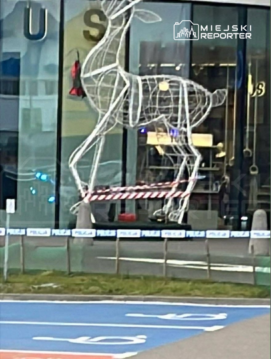 Zgłoszenie do służb przekazał ochroniarz, który zauważył paczkę owiniętą papierem prezentowym ustawioną przy reniferku, który znajduje się przed centrum handlowym. Na miejsce skierowano policję, dwa zastępy straży pożarnej oraz pirotechników z Samodzielnego Pododdziału Kontrterrorystycznego Policji.