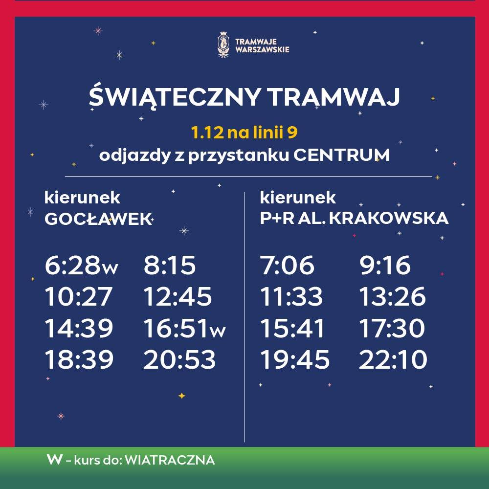 Jak podaje miasto, świąteczny tramwaj kursuje na zwykłych liniach, które są zmieniane tak, aby pojazd mógł odwiedzić różne dzielnice Warszawy – od początku grudnia do początku stycznia, z obowiązywaniem standardowych biletów bez dodatkowych opłat.