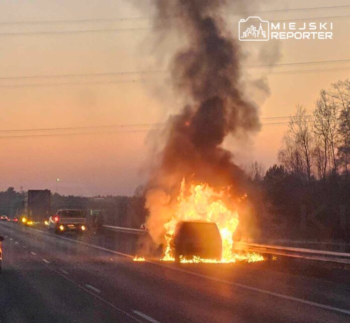 Pożar samochodu osobowego na autostradzie A2! Trwa akcja gaśnicza