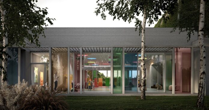 Pod Warszawą powstaje pięciooddziałowe przedszkole autorstwa 77Studio architektury. Rozłożysty, parterowy pawilon z zieloną fasadą i kolorowymi przeszkleniami ma tworzyć...