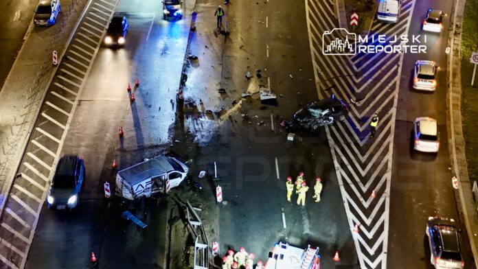 Bus czołowo wjechał w dwa auta na Wisłostradzie. 6 osób rannych w tym troje dzieci