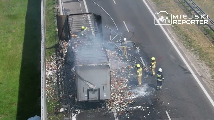 Pożar naczepy na A2. Zablokowana autostrada w kierunku Poznania.