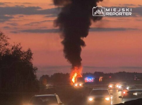Poważny wypadek na S8. W zderzeniu 4 pojazdów, jeden stanął w płomieniach. Pięć osób poszkodowanych. W akcji śmigłowiec LPR