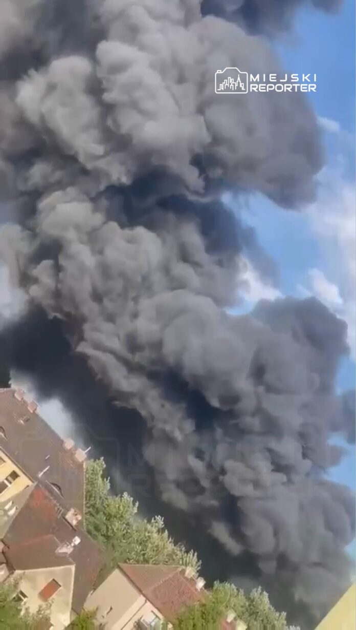 Duży pożar i kłęby czarnego dymu widziane z Warszawy. Trwa akcja gaśnicza