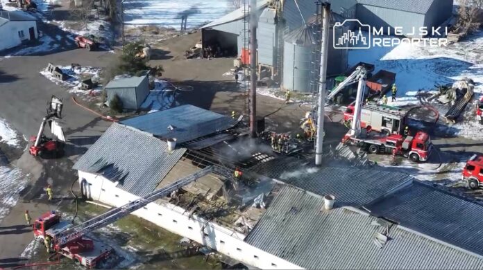 Pożar kurnika na fermie drobiu pod Warszawą. Z ogniem walczyło 10 zastępów straży pożarnej