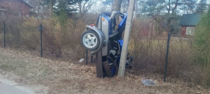 Kierujący motocyklem wypadł z drogi i uderzył w słup. Maszyna stanęła pionowo