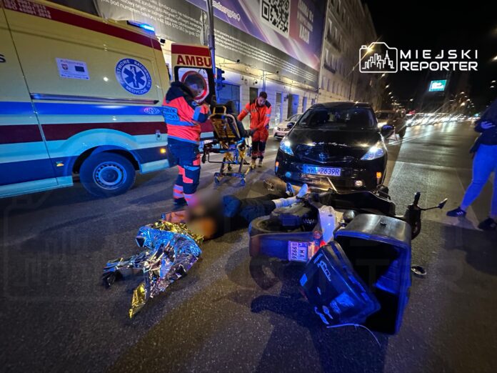 Na skrzyżowaniu Emilii Plater z Koszykową w Śródmieściu doszło do zderzenia samochodu osobowego z kierującym skuterem. Ze wstępnych ustaleń wynika, że obcokrajowiec kierujący toyotą przewozu osób, wykonując lewoskręt wymusił pierwszeństwo w wyniku, czego kierujący motorowerem uderzył czołowo w pojazd osobowy. Kierujący...